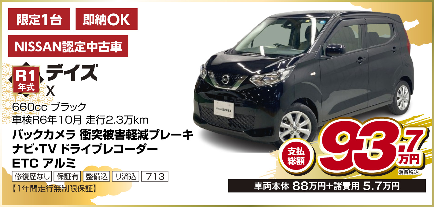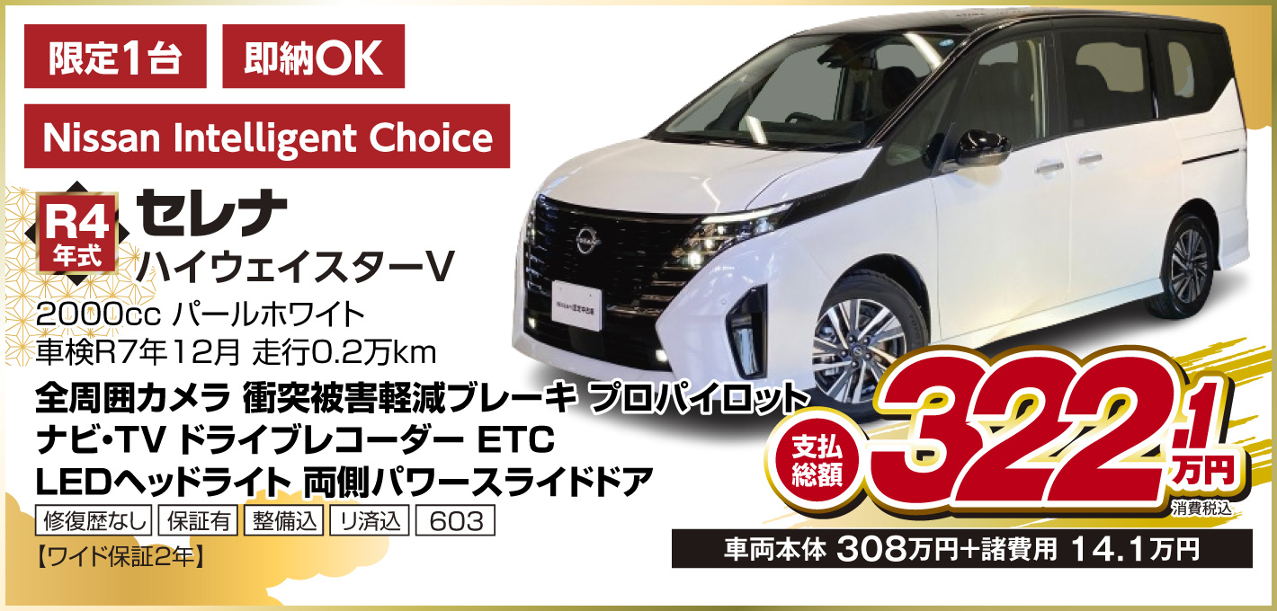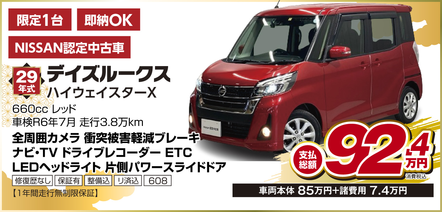 認定中古車(ワイド保証1年)日産ならではの安心や保証が充実。