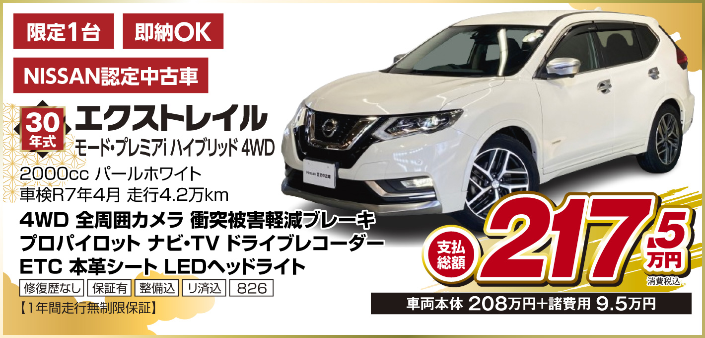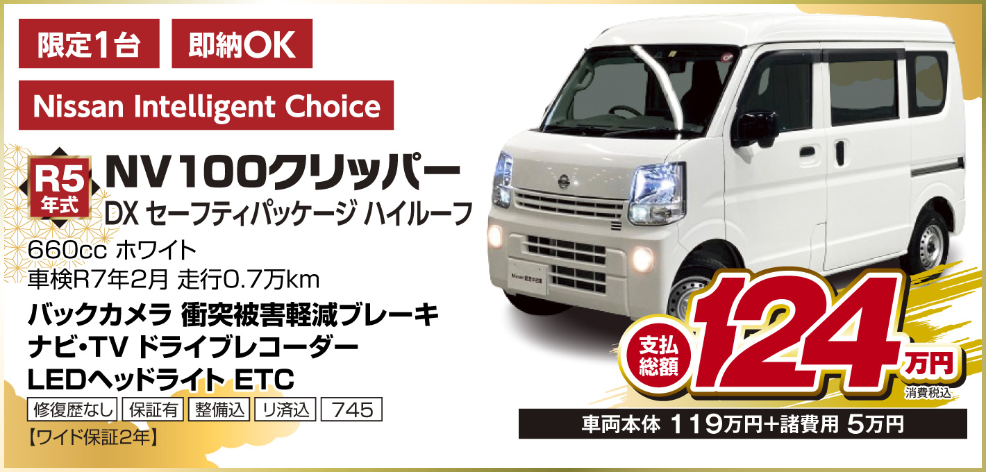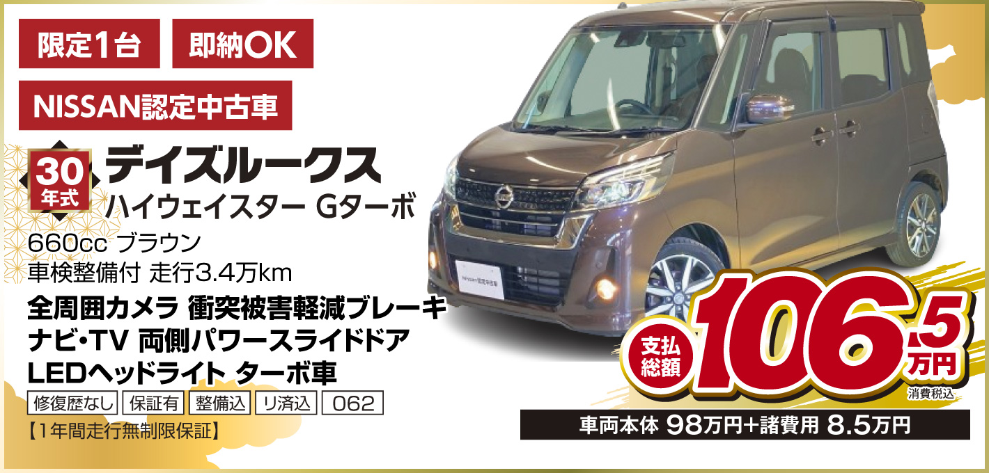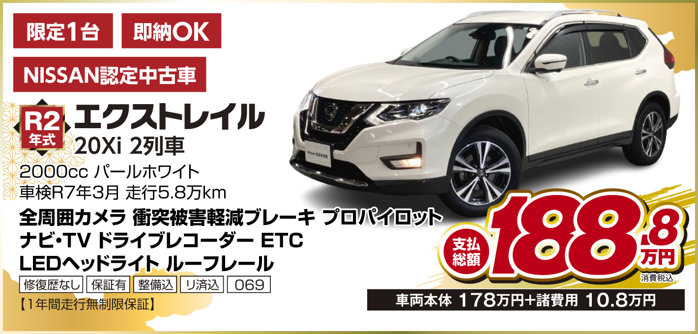 認定中古車(ワイド保証1年)日産ならではの安心や保証が充実。